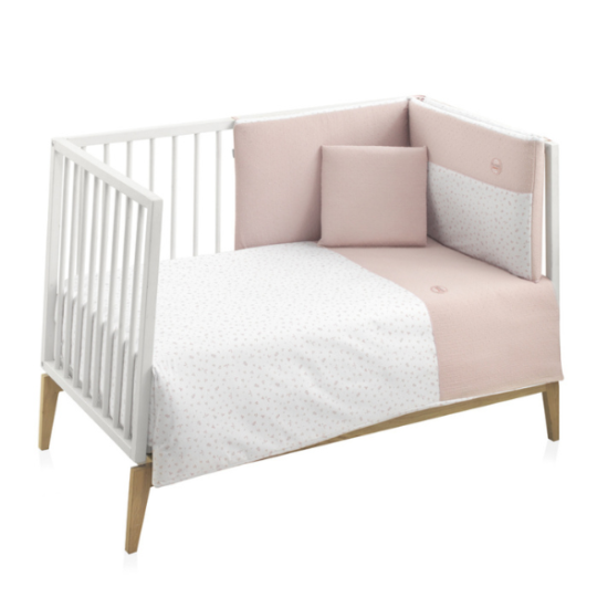 El precio original era: 150,10 €.135,09 €El precio actual es: 135,09 €.Funda nórdica con protector para cuna de 60 Rustic rosa