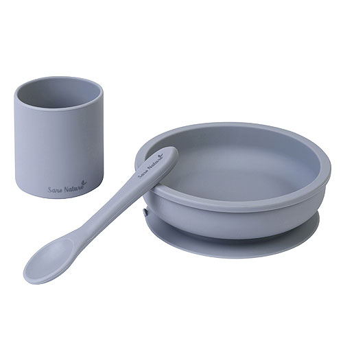 El precio original era: 18,90 €.17,01 €El precio actual es: 17,01 €.Vajilla 3 Piezas de silicona gris
