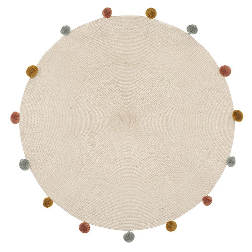 El precio original era: 28,80 €.23,04 €El precio actual es: 23,04 €.Alfombra infantil beige con pompones