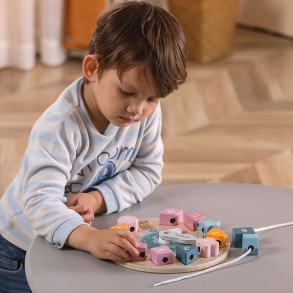 • El juguete incluye bloques de madera con funcionalidad para enhebrar.