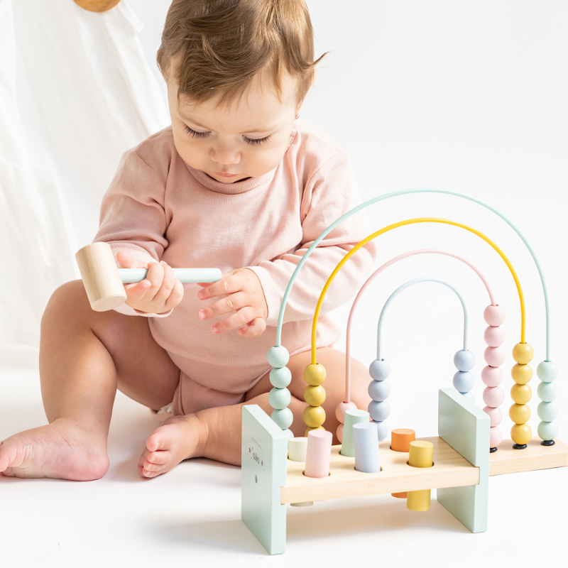 Moviendo sus bolitas de un lado a otro tu peque desarrollará su motricidad fina mientras aprende los números y los colores.