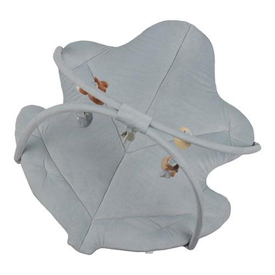 Esta alfombra de juego, con forma de hoja y en un suave tono azul, es el lugar perfecto para que tu bebé se divierta mientras desarrolla sus habilidades motoras y sensoriales.