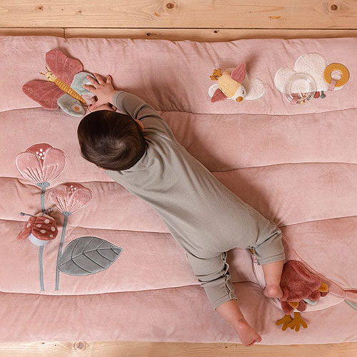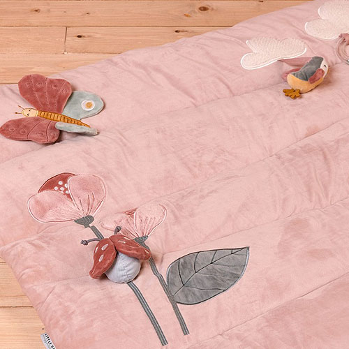 En esta suave y acolchada manta de juegos, los bebés se encontrarán en un colorido mundo de las praderas. Mariposas, flores y pajaritos están por todas partes esperando ser descubiertos. No tendrán tiempo para aburrirse. Perfecta para usar en el parque y para llevarla contigo cuando viajes.