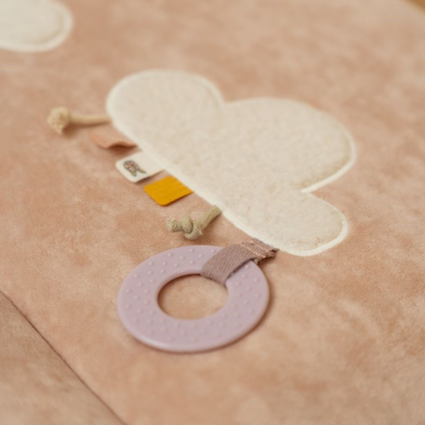 Alfombra de juegos suave y mullidita con Miffy de compañía. Tu bebé podrá descubrir las distintas actividades que ofrece. Un espejo que se esconde detrás del sol, hojas que crujen, suaves nubes con tejido peluche, diferentes etiquetas para explorar, un mordedor y hasta un anillo sonajero.