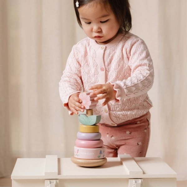 El juguete Anillos apilables balanceables Fairy Garden de Little Dutch es un juguete educativo diseñado para niños a partir de 12 meses, que combina diversión y desarrollo de habilidades.