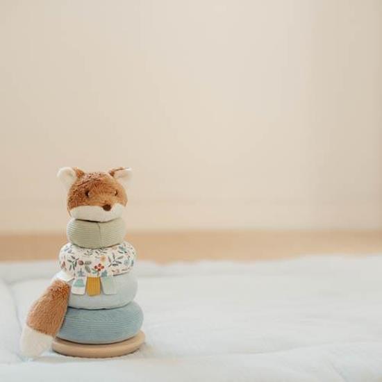 Anillos apilables blanditos de la colección Forest Friends. Animará a los peques, a colocar los anillos de madera y tela en el orden correcto y apilarlos en la pirámide tambaleante. Un desafío de lo más divertido.
