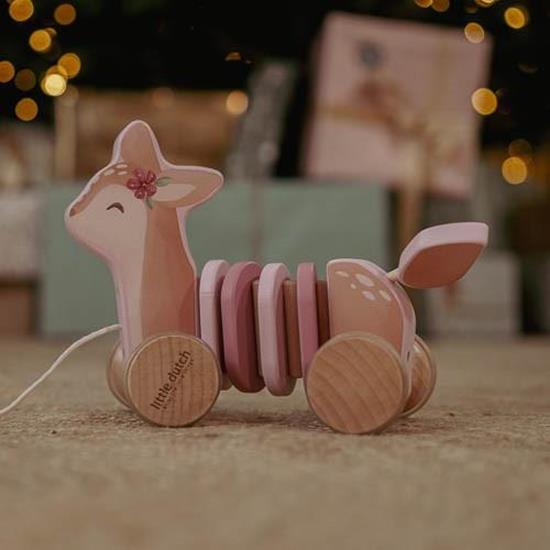 Este pequeño ciervo, está listo para emprender grandes aventuras. Tu peque podrá tirar de la cuerda y observar como el ciervo le sigue con gracia. Elaborado con madera resistente y adornado con anillos de colores, este ciervo para arrastrar no solo brinda entretenimiento sin fin, sino que también promueve el caminar y mejora el desarrollo de habilidades motoras.