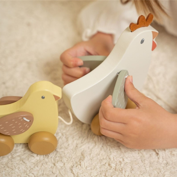 A estos pollitos les encantará ir de aventuras con tu peque por la casa. Le animará a caminar estimulando el desarrollo de las habilidades motoras.