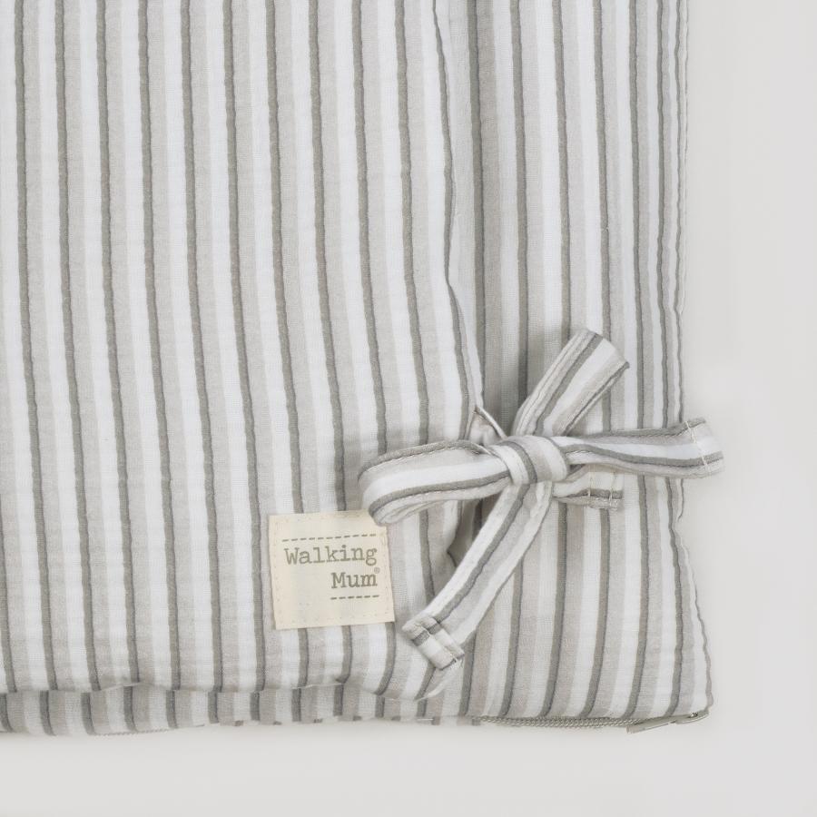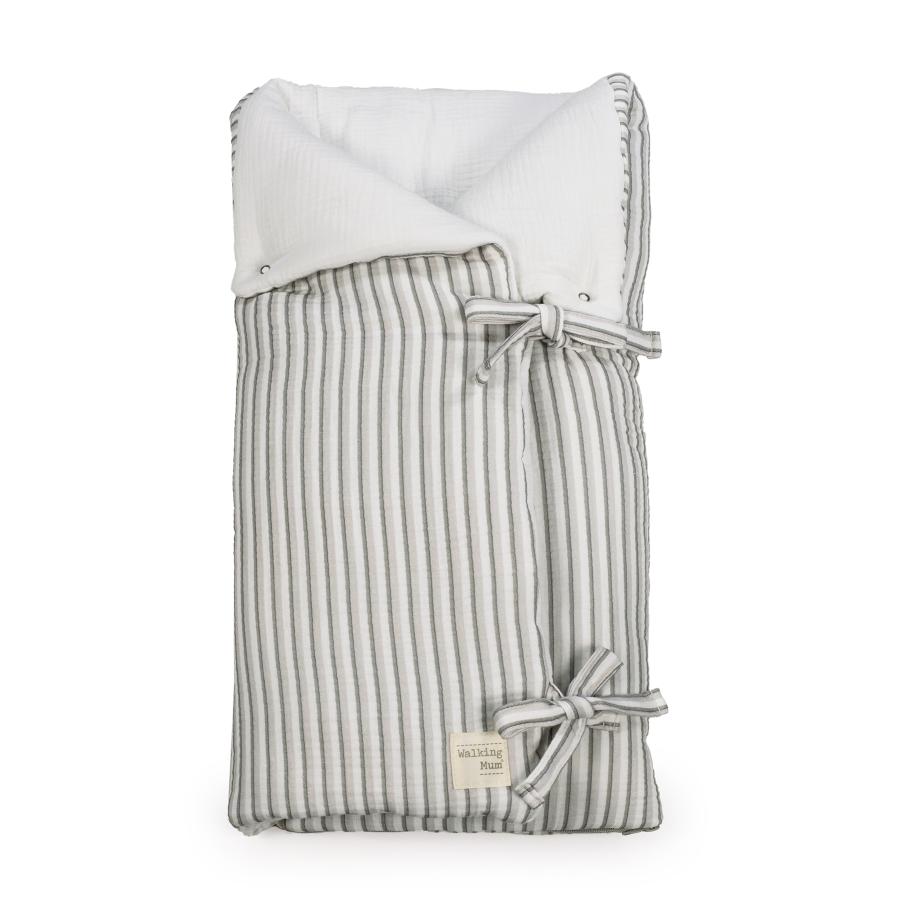 Confeccionado en muselina 100% algodón, ofrece una textura suave y transpirable, ideal para paseos en el capazo o momentos de descanso en la cuna.