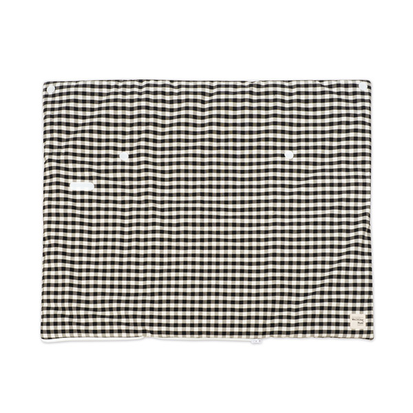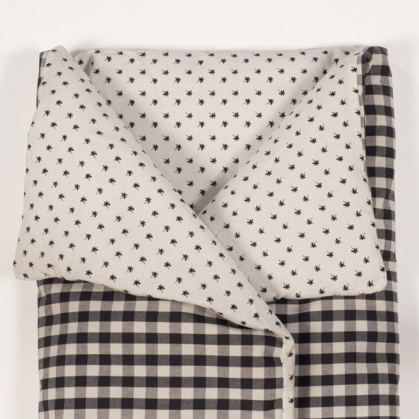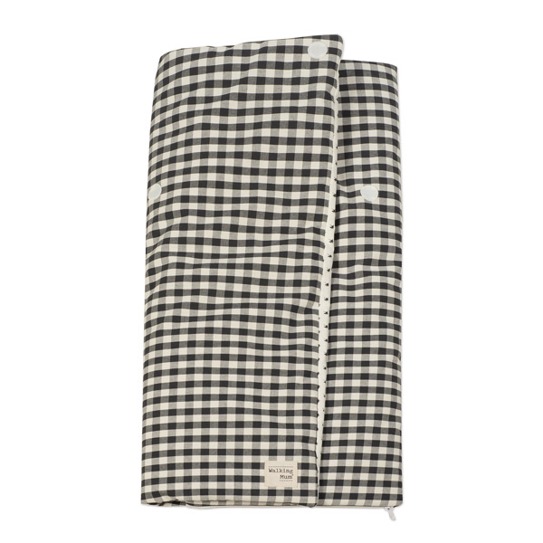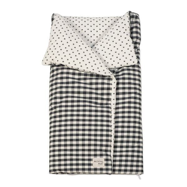 Saco arrullo- manta confeccionado en cuadro vichy XL en color negro. Es perfecto para los primeros días del bebé. Podrás usarlo a modo de mantita y taparlo en sus paseos en el capazo.