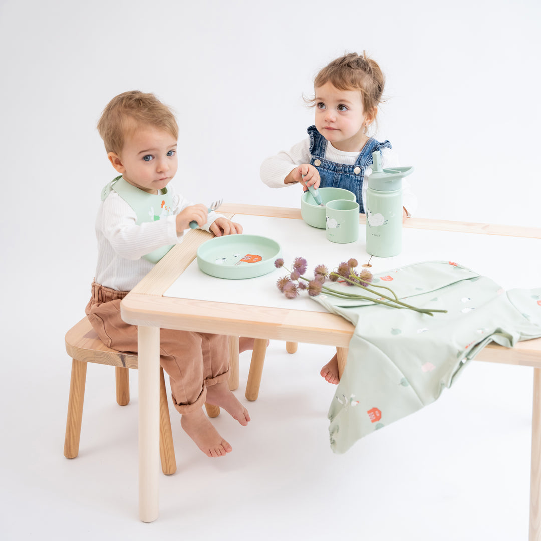 Cuando tu peque empieza a comer solito, este babero impermeable con mangas será tu mayor aliado. Y es que su bolsillo frontal lo atrapada todo. Su cuello se puede ajustar mediante un velcro, por lo que resulta muy fácil de poner y quitar. Es perfecto para llevarlo también a la guardería o al colegio.