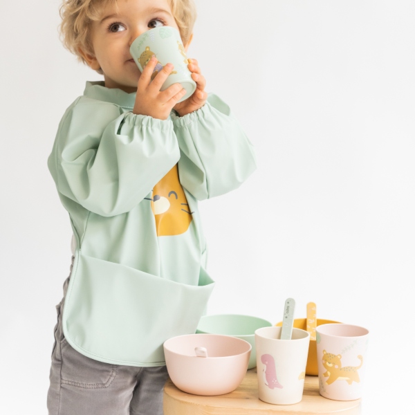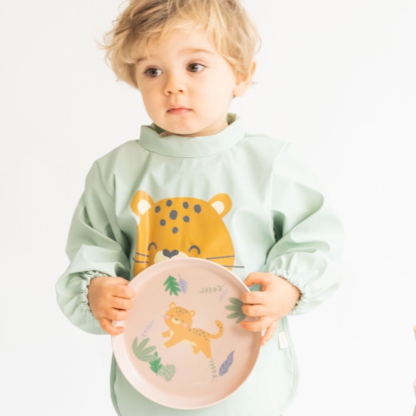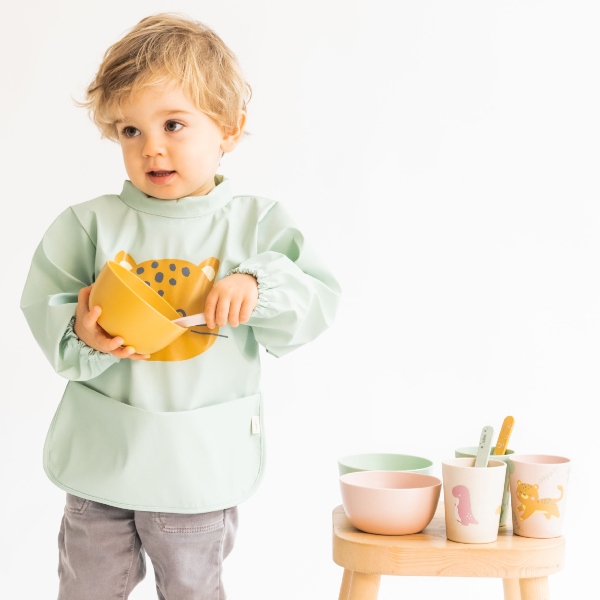 Cuando tu peque empieza a comer solito, este babero impermeable con mangas será tu mayor aliado. Y es que su bolsillo frontal lo atrapada todo. Su cuello se puede ajustar mediante un velcro, por lo que resulta muy fácil de poner y quitar. Es perfecto para llevarlo también a la guardería o al colegio.