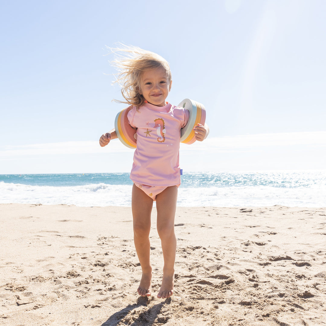 El uso de este bañador no sustituye jamás el uso de crema protectora y se debe de evitar la exposición solar del niño entre las horas en que el sol está en su punto más álgido.
