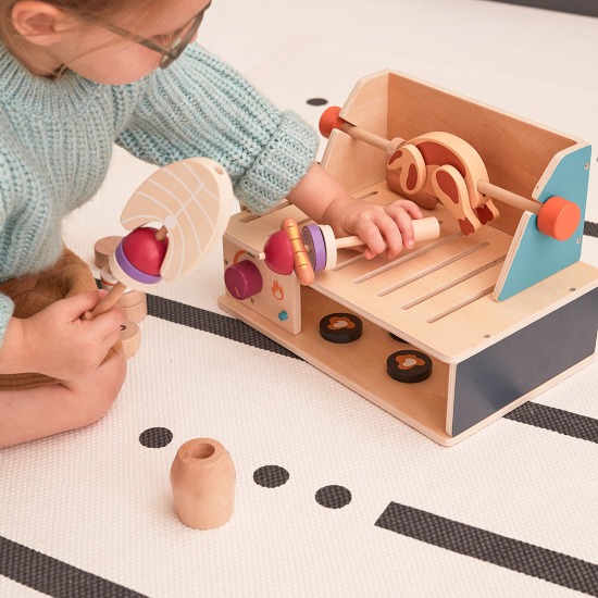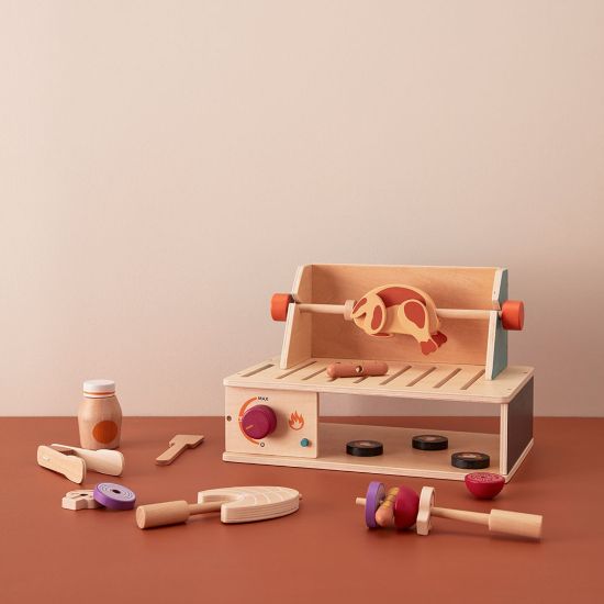 Esta barbacoa de madera proporcionará a los peques horas de juego y diversión. Y es que podrán preparar una exquisita comida a sus comensales. Qué tal una carne o unas salchichas acompañados con verduras? sazónalos con sal y pimienta y a disfrutar!