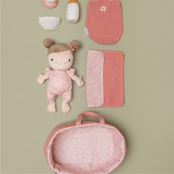Bebé Rosa con canastilla y accesorios de la firma Little Dutch.