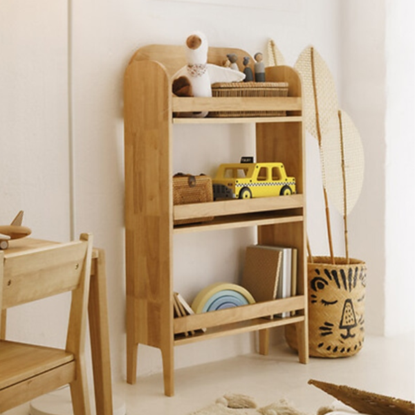 Esta estantería tiene el tamaño ideal para que los peques tengan a su alcance sus libros y juguetes favoritos. Cuenta con tres estantes y travesaños para mantener los libros en su sitio sin que se caigan.