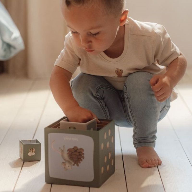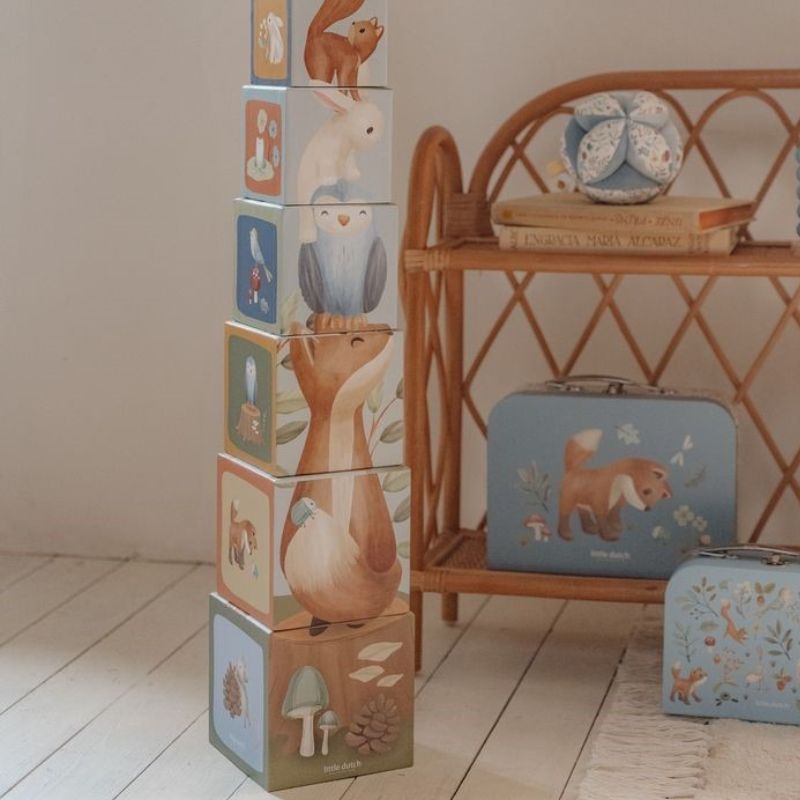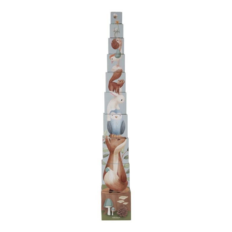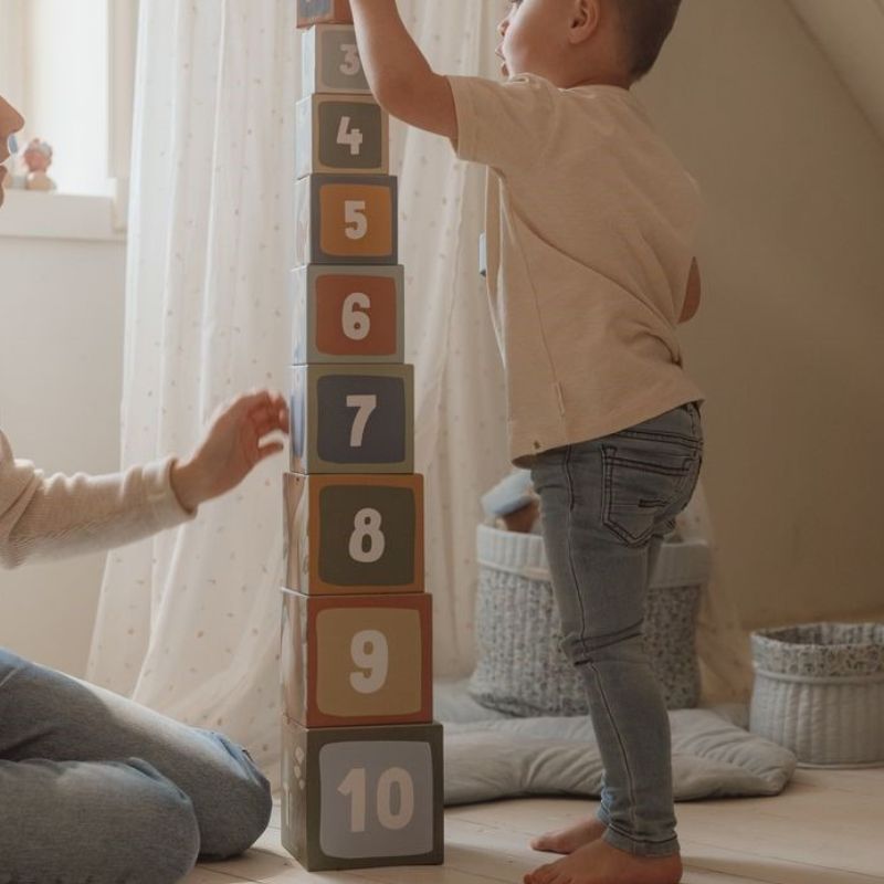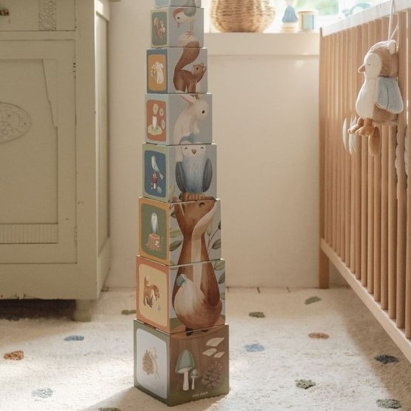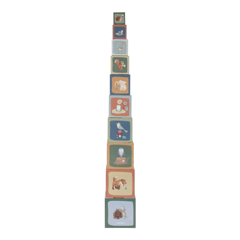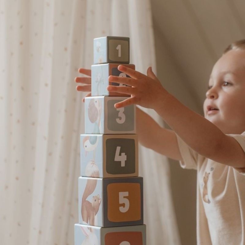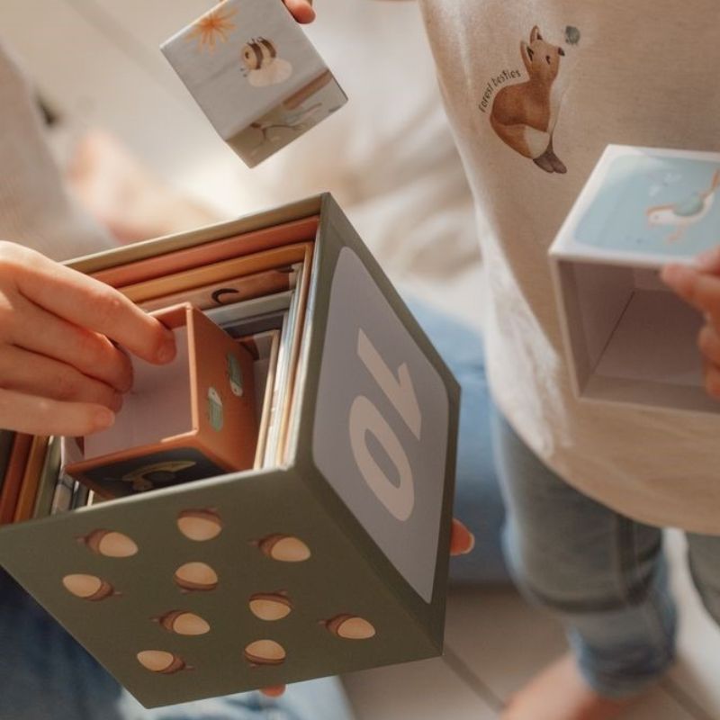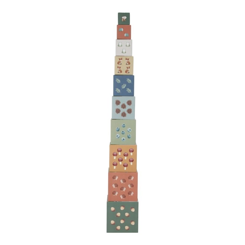 Con estos bloques de construcción, los peques aprenderán a contar hasta 10 de forma divertida. Los bloques presentan hermosas ilustraciones de la colección Forest Friends, como conejitos, erizos  y elementos de la naturaleza. Podrán apilar los bloques para construir una torre alta o ponerlos en el suelo de forma horizontal. Los bloques pequeños se pueden colocar dentro de los más grandes, por lo que son fáciles de ordenar. Los bloques están hechos de cartón resistente, por lo que son muy duraderos. El bloque más pequeño mide 5 cm y el más grande 14 cm.