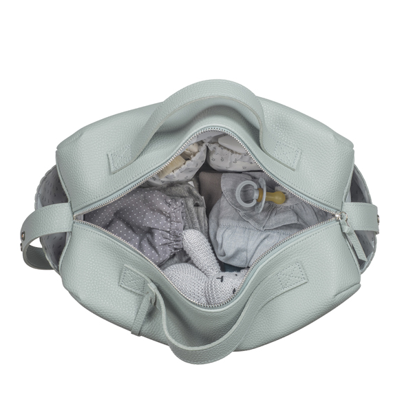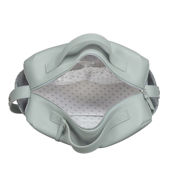 La bolsa canastilla para carrito de bebé o el bolso para silla de paseo, está confeccionada en polipiel en color verde. Tiene un diseño muy elegante y práctico con una gran capacidad para llevar todo lo que necesita tu bebé a la hora de salir de casa. Dispone de dos bolsillos laterales y bolsillos interiores para poder colocar de forma ordenada el biberón, cubiertos, pañales o productos de aseo.