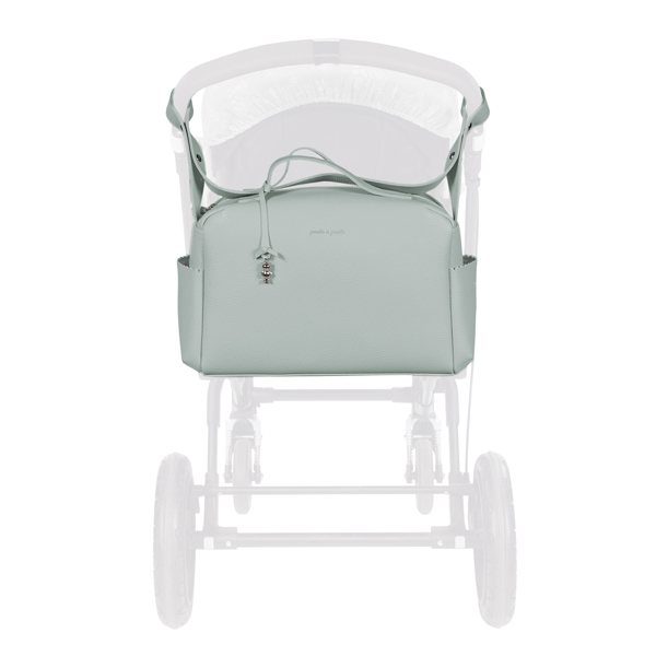 - Incluye asa larga para colgar en el cochecito con broches a presión y asa de mano.