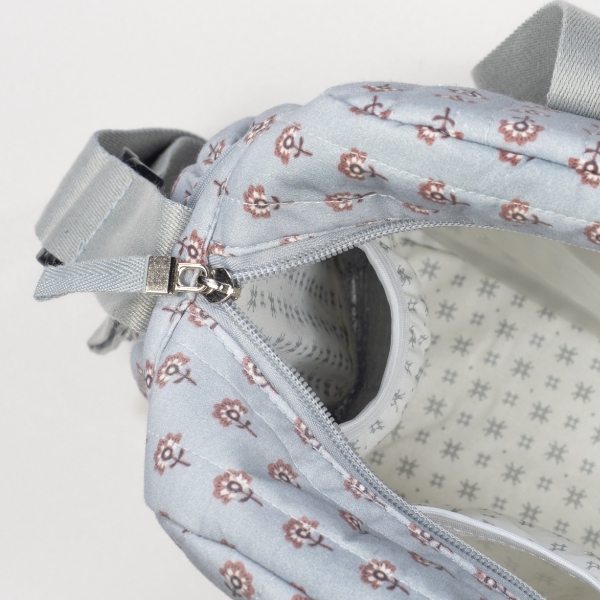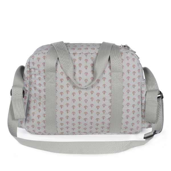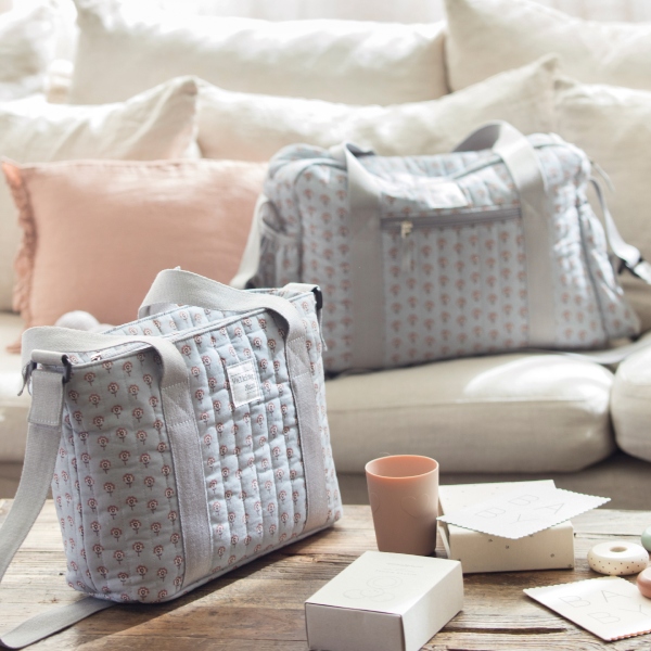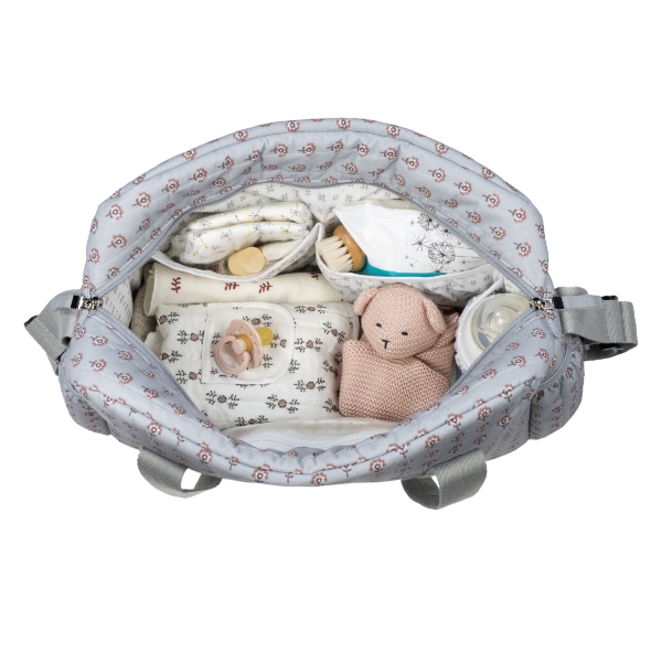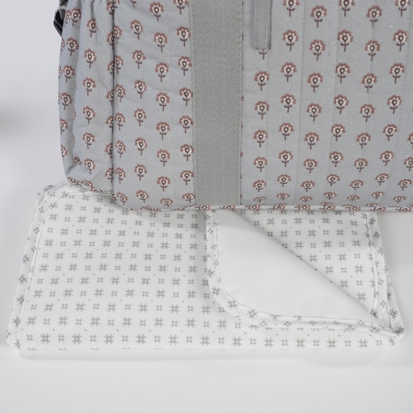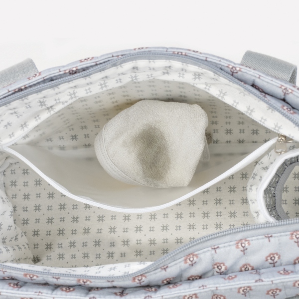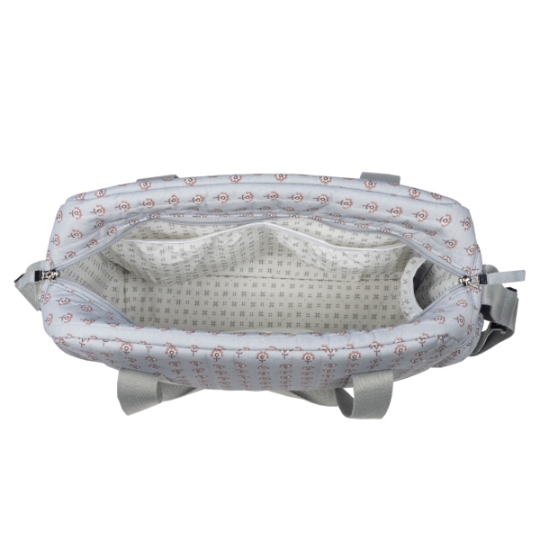 Bolsa canastilla en estampado geométrico que cuenta con una gran capacidad. Dispone de bolsillos interiores para tener todos los complementos de tu bebé bien organizados. También dispone de dos bolsillos laterales para poder llevar el biberón o una botella de agua. Además, tiene un bolsillo interior plastificado para poder guardar ropita húmeda y un bolsillo térmico para guardar un biberón.
