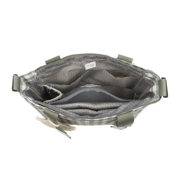 - Incluye asas para colgar en el cochecito y asa larga para colgar en el hombro.