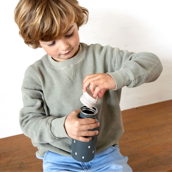 La botella de acero inoxidable Happy Prints es un accesorio ideal para acompañar a los niños en sus aventuras diarias, ya sea en la escuela infantil, en el colegio o en las actividades al aire libre.