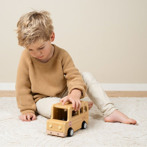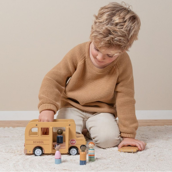 Están todos los niños sentados? Cuando el conductor encienda el motor, comenzarás un viaje lleno de alegría y aventuras. Este vehículo de madera te llevará a explorar paisajes urbanos y a recoger pasajeros imaginarios. Las ruedas giran suavemente, permitiendo que tu peque se desplace con facilidad por la habitación. La puerta y el techo del autobús se abren, y las figuras son compatibles con casas de muñecas y otros juguetes, como aviones y caravanas.