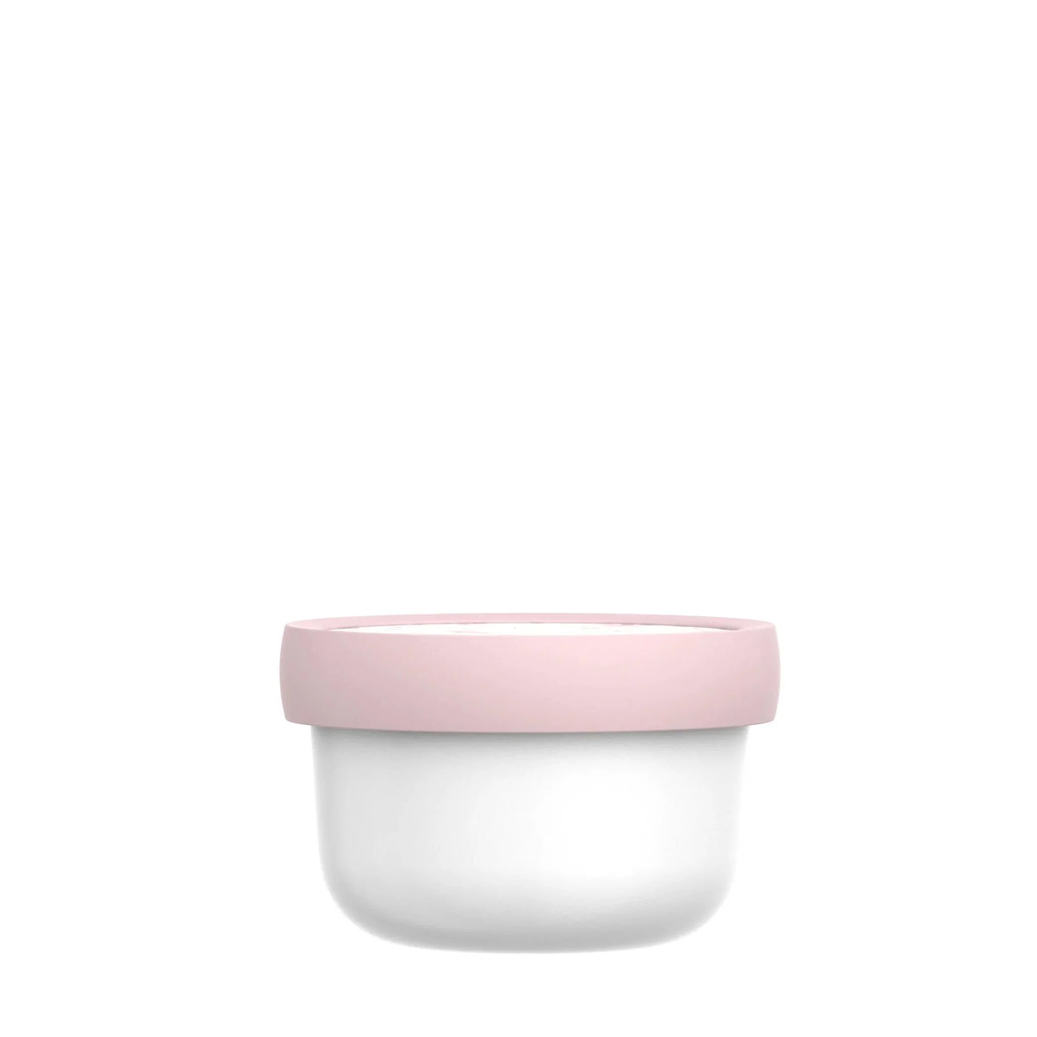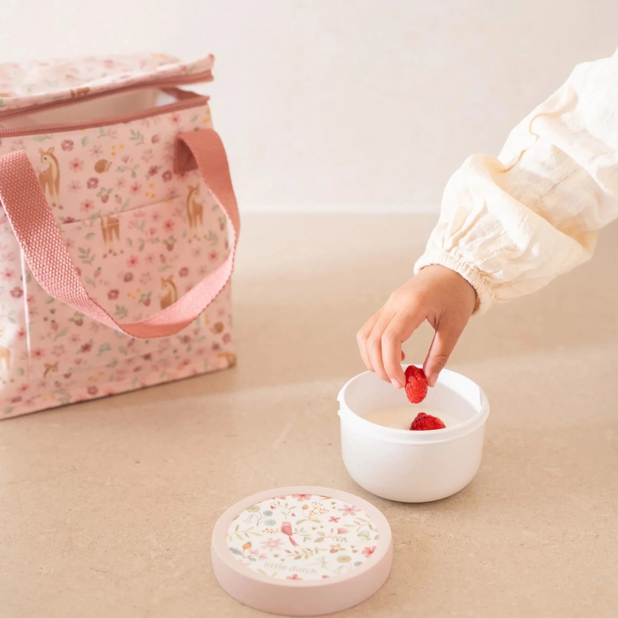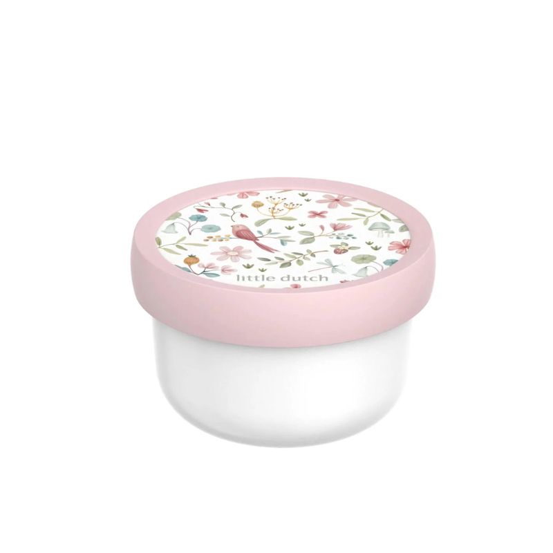 Cajita redonda para llevar alimentos. Por ejemplo una o dos piezas de fruta.