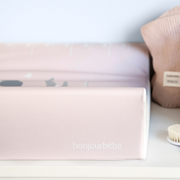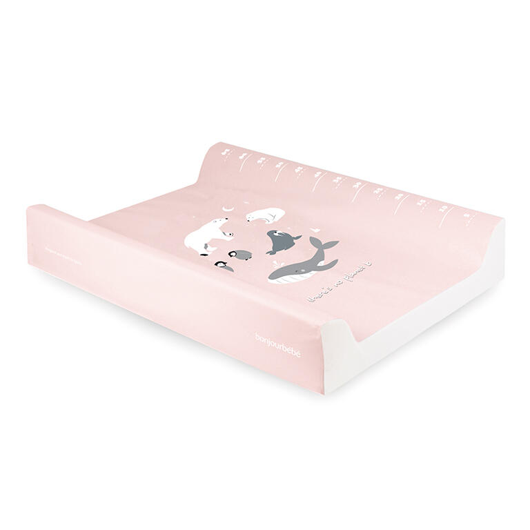 Cambiador plastificado estampado con medidor para que puedas medir a tu bebé. Podrás usarlo en cualquier superficie lisa y adaptarlo a una cómoda.