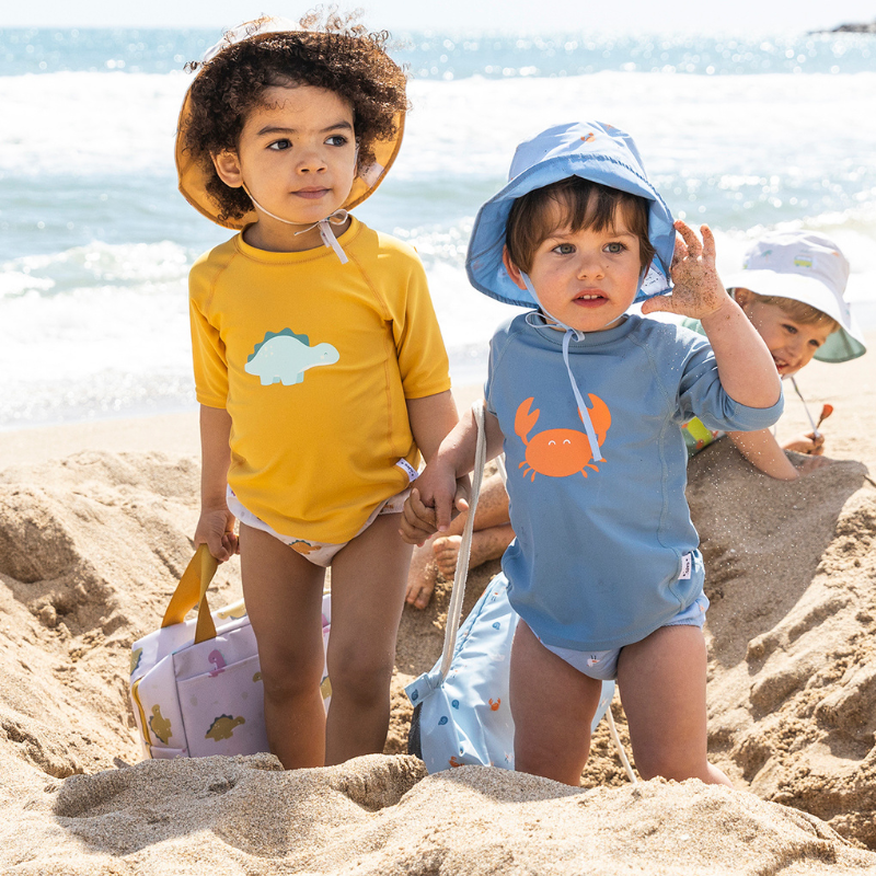 Esta camiseta con protección solar UV UPF 50+ protegerá a tu peque durante los días de sol en la playa y la piscina. Su tejido es muy suave y flexible, súper respetuoso con la piel sensible de tu peque. Además tiene  un alto nivel de resistencia al cloro, ¡perfecta para utilizarla en la piscina!