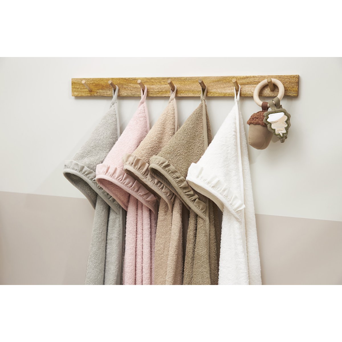 Capa de baño con volantes, un complemento imprescindible para mantener a tu bebé calentito y cómodo después del baño, la ducha o la natación.