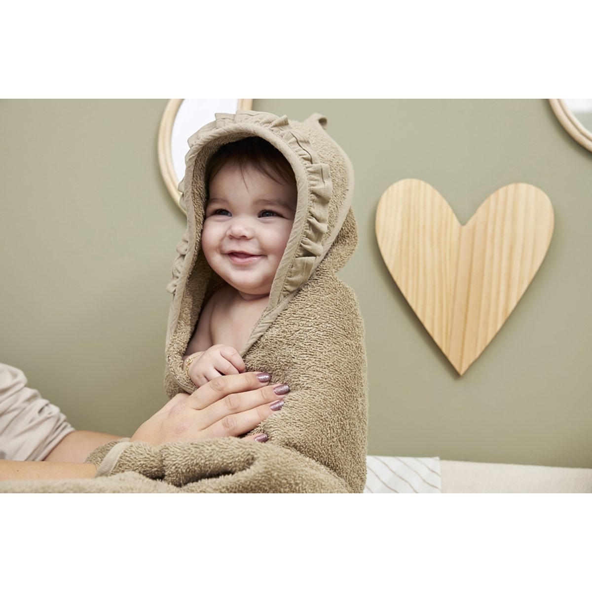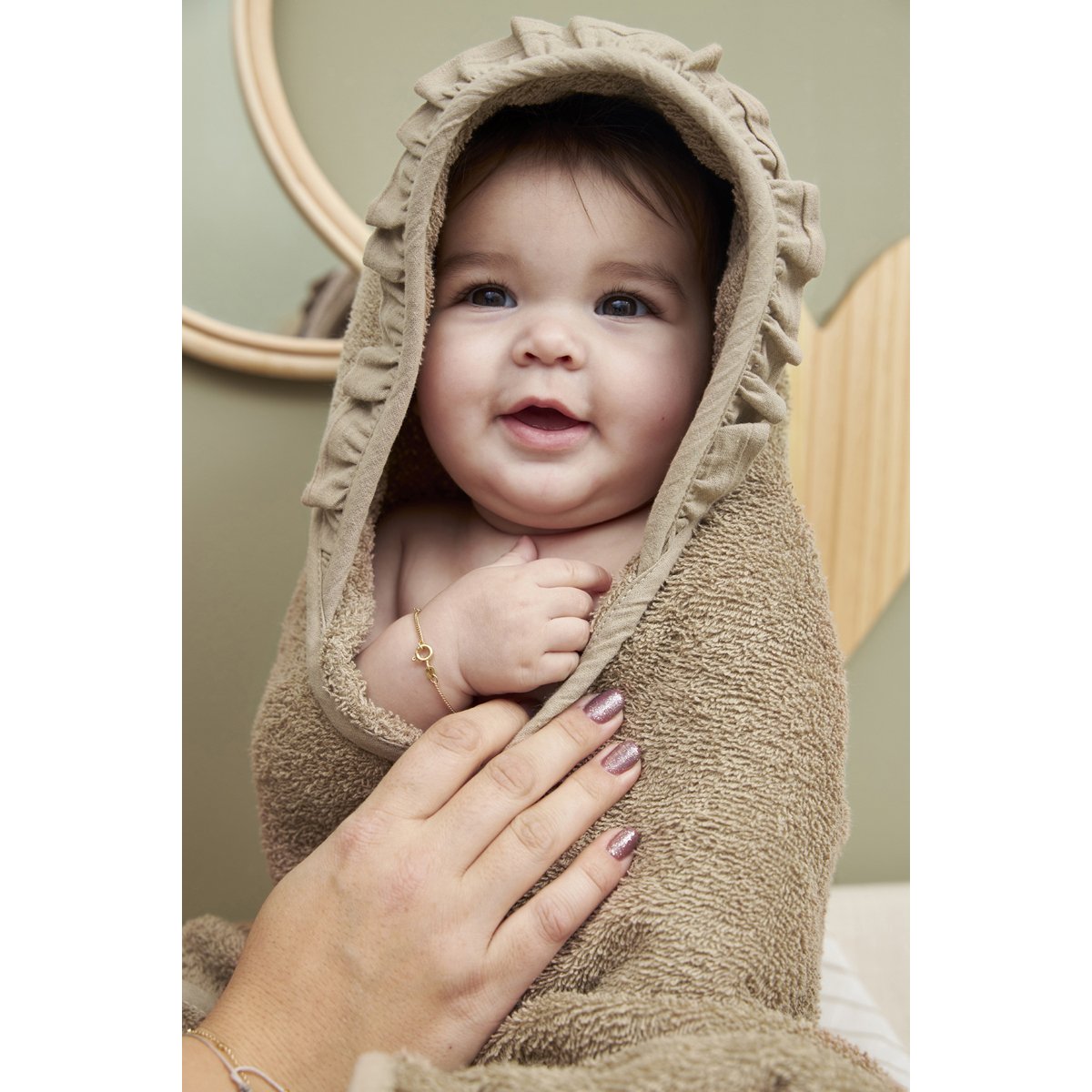 Capa de baño con volantes, un complemento imprescindible para mantener a tu bebé calentito y cómodo después del baño, la ducha o la natación.