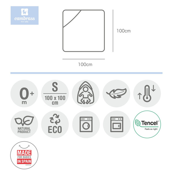 - Composición: 100% algodón. Fibras de Tencel (fibras botánicas y ecológicas, que evitan la aparición de alergias o irritaciones en la piel del bebé y ofrece la máxima suavidad al no retener la cal del agua durante el lavado).