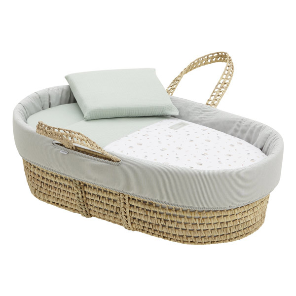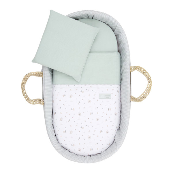 - Incluye: capazo de mimbre, colchón, colcha, cojín de 30x30cm y vestidura.