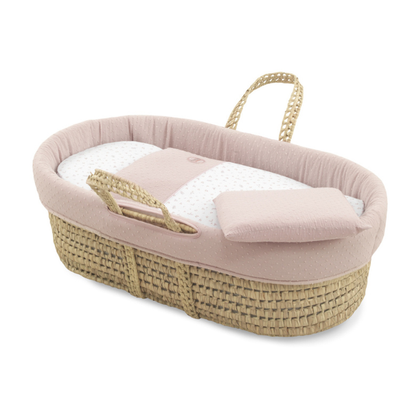 - Incluye: capazo de mimbre, colchón, colcha, cojín de 30x30cm y vestidura.
