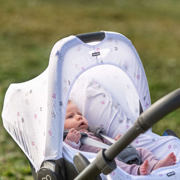 Capota universal adaptable a la mayoría de modelos de sillas del grupo 0. Es muy fácil de poner, en unos segundos la tendrás colocada. Protegerá a tu bebé del viento y de la luz y del ruido. Para los rayos del sol crea una protección UV óptima UPF40+.