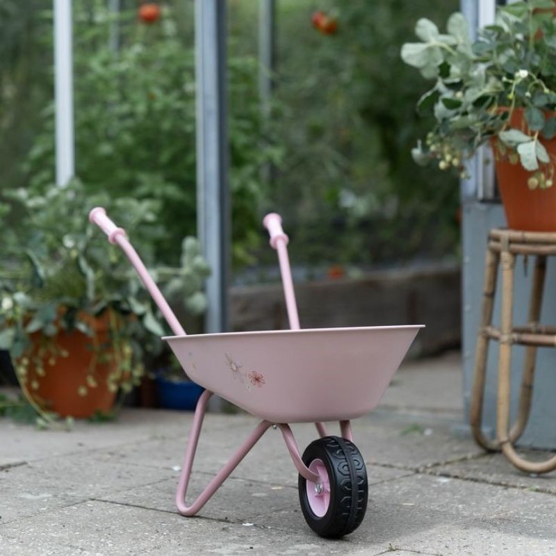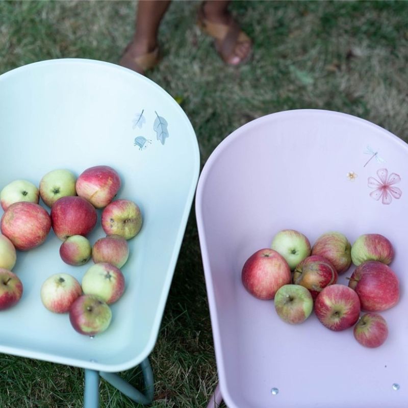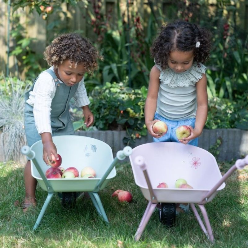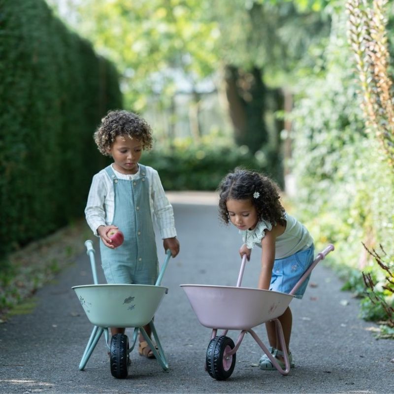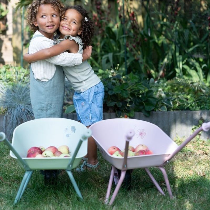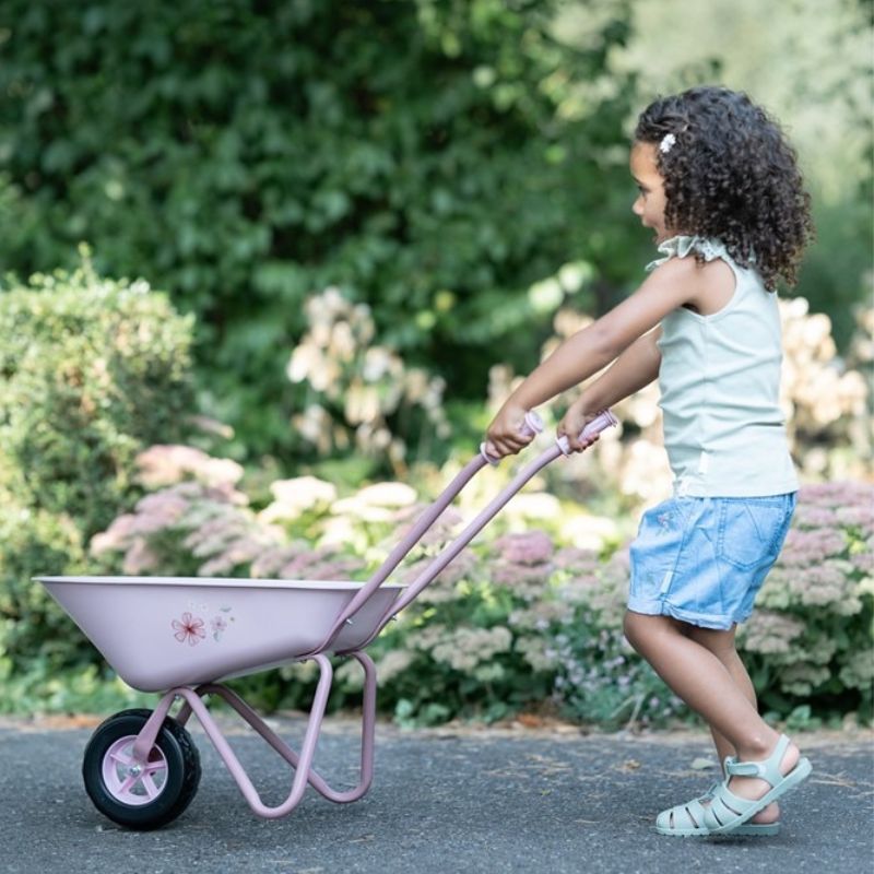 Haz que jugar en el jardín sea aún más divertido con esta carretilla resistente. Está hecha de metal y cuenta con asas y ruedas de plástico, lo que la hace muy estable y fácil de manejar. Su amplio compartimento es perfecto para llevar tierra, plantas o incluso juguetes de un lado a otro. Los colores vivos y los bonitos dibujos inspirados en el jardín de hadas le dan un aire alegre y especial. Es ideal para niños y niñas activos que disfrutan ayudando y explorando al aire libre.