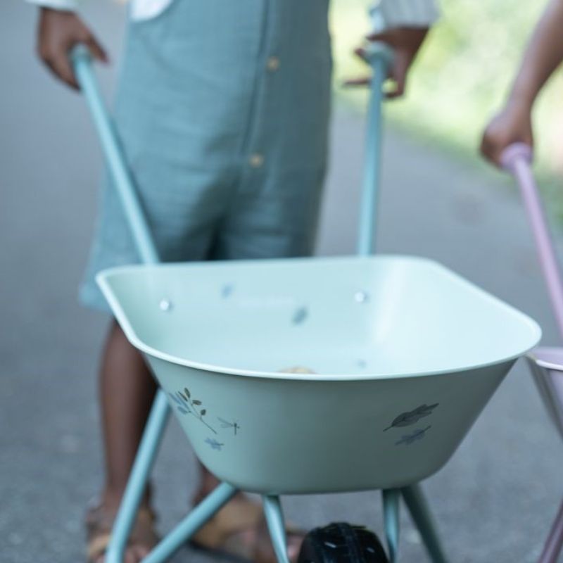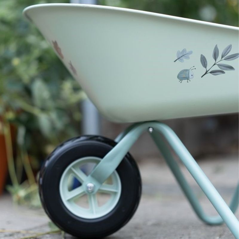 Haz que jugar en el jardín sea aún más divertido con esta carretilla resistente. Está hecha de metal y cuenta con asas y ruedas de plástico, lo que la hace muy estable y fácil de manejar. Su amplio compartimento es perfecto para llevar tierra, plantas o incluso juguetes de un lado a otro. Los colores vivos y los bonitos dibujos inspirados en la colección Forest Friends le dan un aire alegre y especial. Es ideal para niños y niñas activos que disfrutan ayudando y explorando al aire libre.