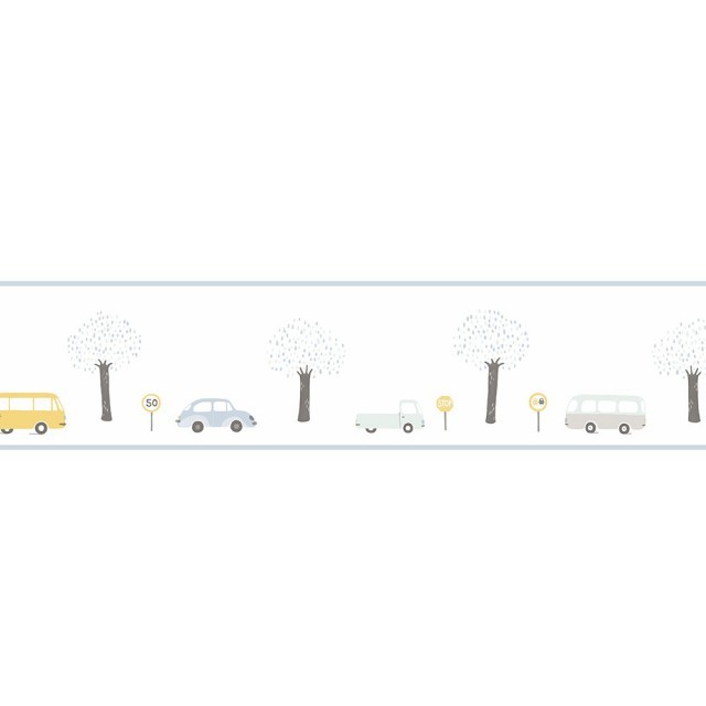 Cenefa de papel pintado Vintage Cars Bleu
