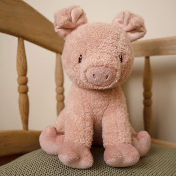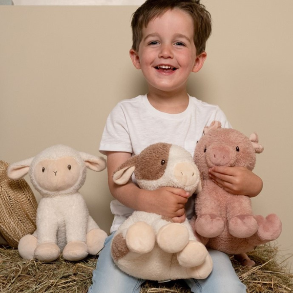 A tu peque le encantará la compañía de este adorable y suave peluche. Este cerdito tiene grandes amigos con los que jugar, como son: la oveja, la vaca y la gallina.