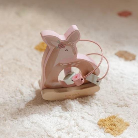 Deja que las cuentas giren alrededor del ciervo de madera mientras se balancea. Este bonito juguete, invitará a tu peque a empujarlo suavemente, acompañado por el zumbido de una abeja, junto a flores y hojas del Fairy Garden. Mejorará las habilidades motoras, añadiendo un toque mágico al juego.