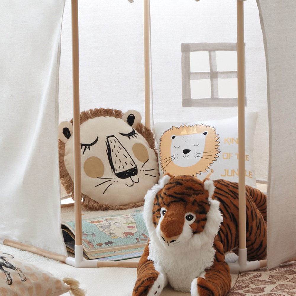 Este bonito cojín va a juego con el cesto cambiador que habíamos comprado y con la decoración de la habitación con temática de selva. Se recomienda mucho.