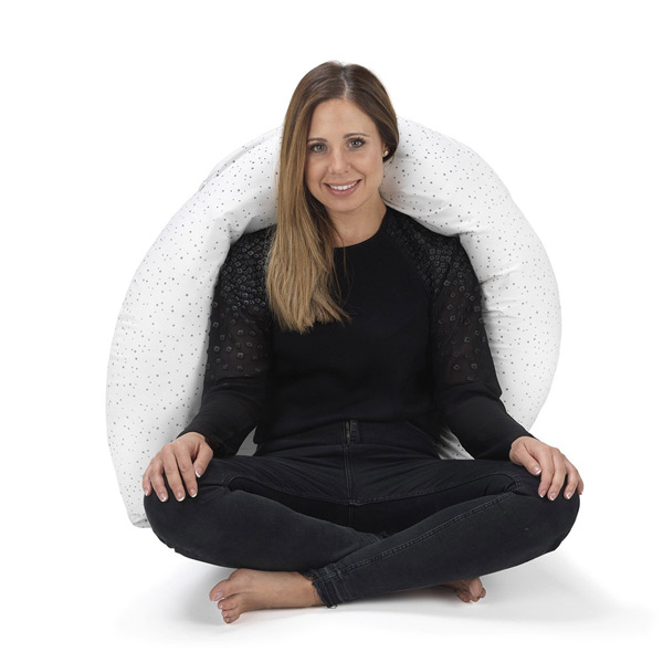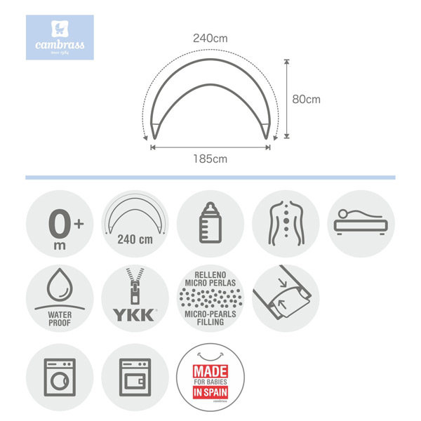 Es un complemento ideal durante el embarazo y un artículo imprescindible durante la lactancia. Su diseño es muy parecido a la luna creciente. En los meses del embarazo, su relleno especial de micro perlas, lo hace 100% adaptable a cualquier etapa del embarazo. Luego en la lactancia, es perfecto. El artículo es desenfundable por si se quiere lavar la parte exterior, el interior va con un tejido hidrófugo que lo hace impermeable y que no puedan pasar las posibles gotas de leche. También es un apoyo perfecto para el bebé siempre con vigilancia materna / paterna.