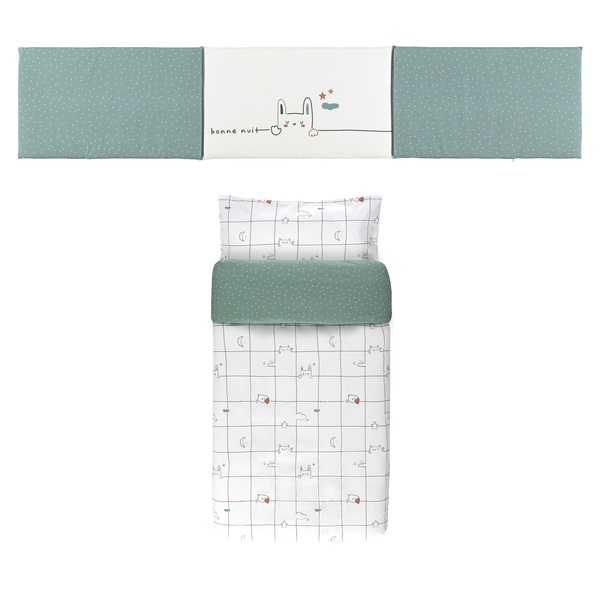 Colcha con protector para cunaTeddy rosa de Petit Praia.