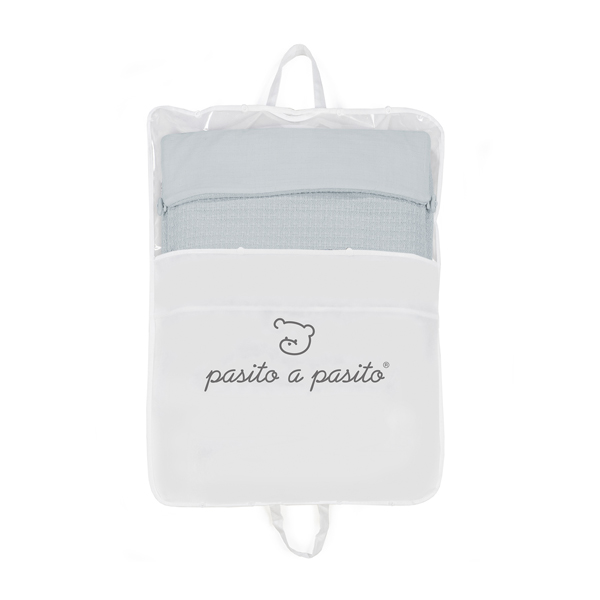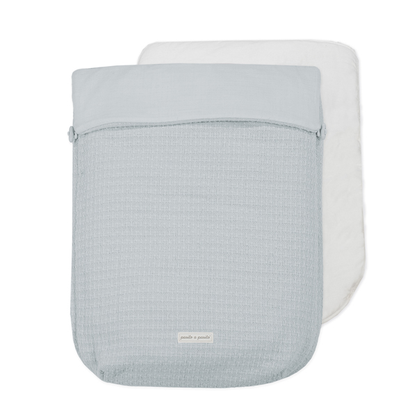 Colchoneta confeccionada en tejido leno en color sky. Es la cobertura perfecta que para que tu bebé vaya más cómodo en la silla de paseo durante los días de más calor. El respaldo cuenta con un tejido transpirable que aísla la humedad y evita la sudoración excesiva del bebé. Dispone de varias aperturas (ojales) para ajustarla a tu silla de paseo.