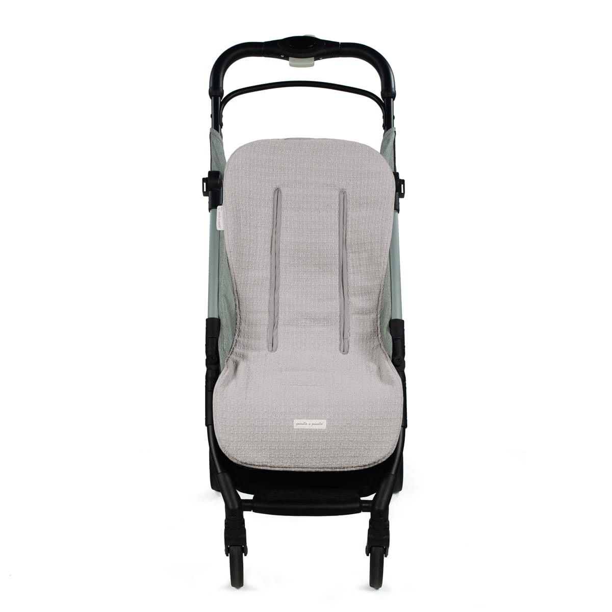 Colchoneta confeccionada en tejido leno en color gris. Es la cobertura perfecta que para que tu bebé vaya más cómodo en la silla de paseo durante los días de más calor. El respaldo cuenta con un tejido transpirable que aísla la humedad y evita la sudoración excesiva del bebé. Dispone de varias aperturas (ojales) para ajustarla a tu silla de paseo.