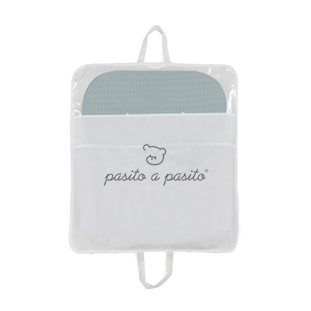 Colchoneta confeccionada en tejido leno en color verde. Es la cobertura perfecta que para que tu bebé vaya más cómodo en la silla de paseo durante los días de más calor. El respaldo cuenta con un tejido transpirable que aísla la humedad y evita la sudoración excesiva del bebé. Dispone de varias aperturas (ojales) para ajustarla a tu silla de paseo.