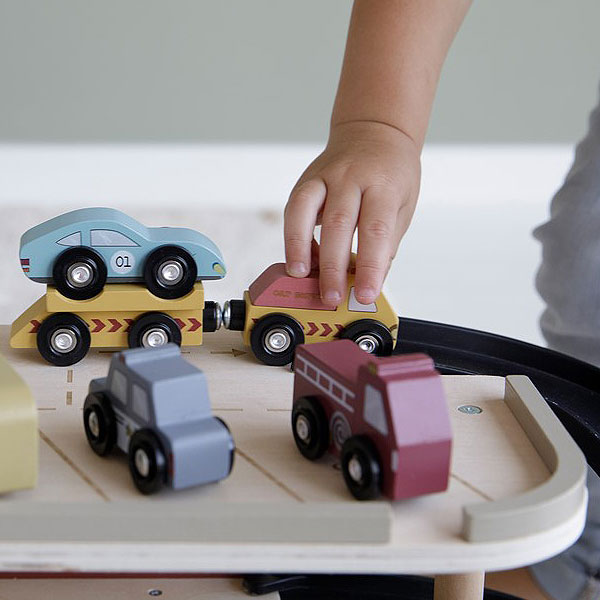 Me encantan los juguetes de esta marca. Los vehículos son perfectos para combinar el juego con vías, trenes y bloques de construcción.
