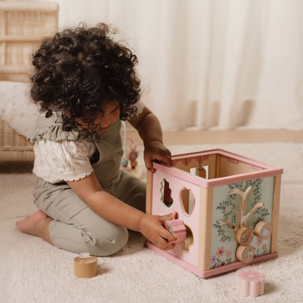El Cubo de actividades Fairy Garden de Little Dutch es un juguete educativo diseñado para niños a partir de 18 meses, que combina diversión y desarrollo de habilidades.