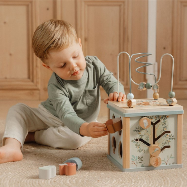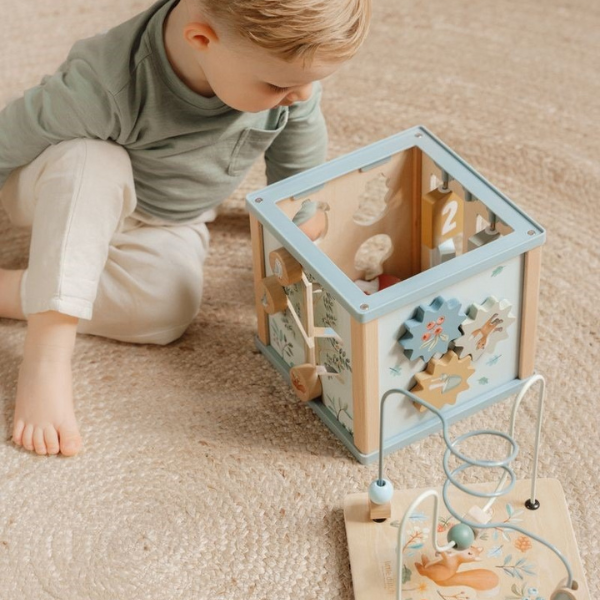 El Cubo de actividades Forest Friends de Little Dutch es un juguete educativo diseñado para niños a partir de 18 meses, que combina diversión y desarrollo de habilidades.